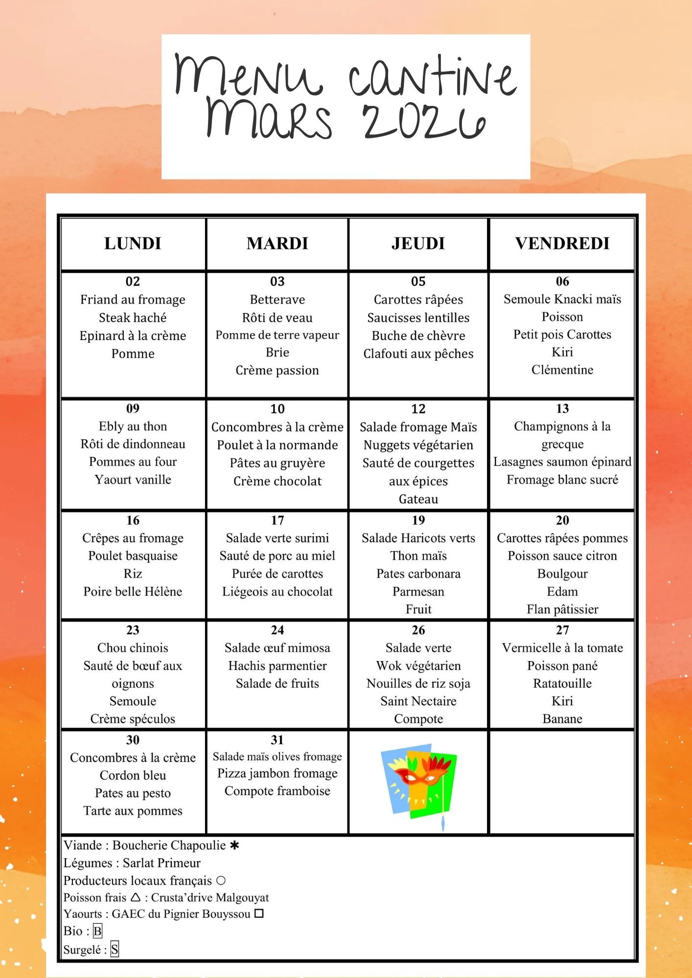 Téléchargez le menu de mars 2026 :